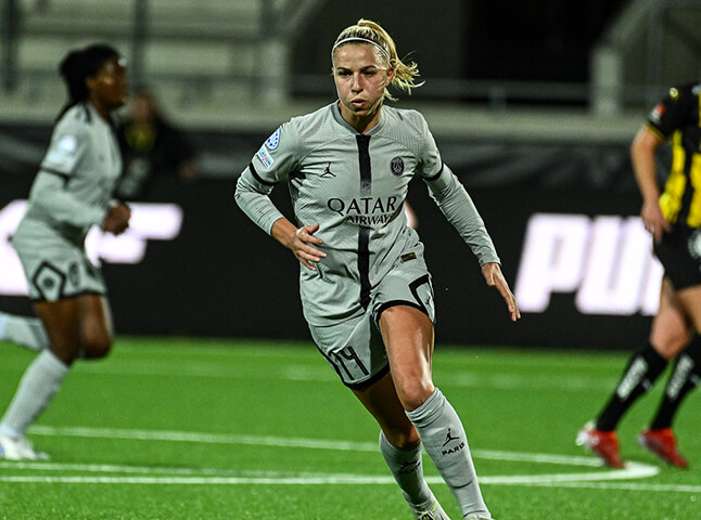 Born on December 17, 1994, in Poppel, Belgium, Jackie Groenen wears the colors of Paris Saint-Germain since the summer of 2022. This Dutch international knows the Women's Premier League well, having played there between 2015 and 2015 with Chelsea, then between 2019 and 2022 with Manchester United. She quickly found a place in the Parisian midfield, as against Le Havre in D1 Arkema or against Hacken in Champions League.