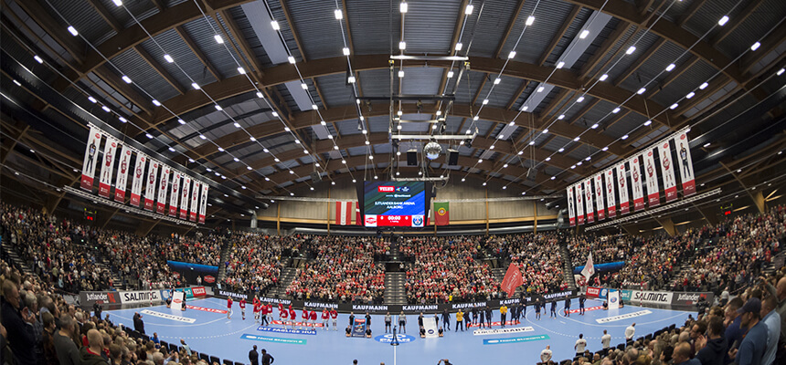 Located on the southern outskirts of the city, near Aalborg University, the Gigantium is the official home of Aalborg Handbold and its women's section. Inaugurated in 1999, the hall has a capacity of 5,800 seats in handball configuration.