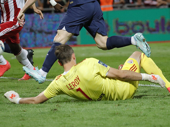 Born in Pas-de-Calais, Benjamin Leroy trained at AS Nancy Lorraine and at Châteauroux. He then made his professional debut at Tours, at this time in Ligue 2, where he played 115 games. The goalkeeper born in 89 discovered the elite of French soccer when he joined Evian Thonon Gaillard in 2014, just a few years after the Savoyard club experienced its first rise in Ligue 1. After 2 seasons as substitute at Dijon FCO, Benjamin Leroy joined the ranks of AC Ajaccio with the goal of meeting again a place of number 1 and the Ligue 1. For his 4th season with the Bears, Benjamin Leroy was elected best goalkeeper of Ligue 2 at the UNFP trophies 2021/22 and contributed greatly to the accession of his team in the first division.
