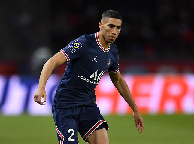 7 goals and 9 assists during the 2020/21 Serie A season, Achraf Hakimi joined Paris Saint-Germain on July 6th, 2021. A modern right-back, whose qualities of speed and forward projection are well above average, the Moroccan international quickly adapted to Mauricio Pochettino's tactical set-up, scoring 3 times in only 7 games. On September 22, 2021, he scored two goals against Metz, giving the Red and Blue a victory in extra time. With Inter Milan, he had also offered the title of the Italian champion by scoring the second goal against Crotone on matchday 34. A player of great occasions.