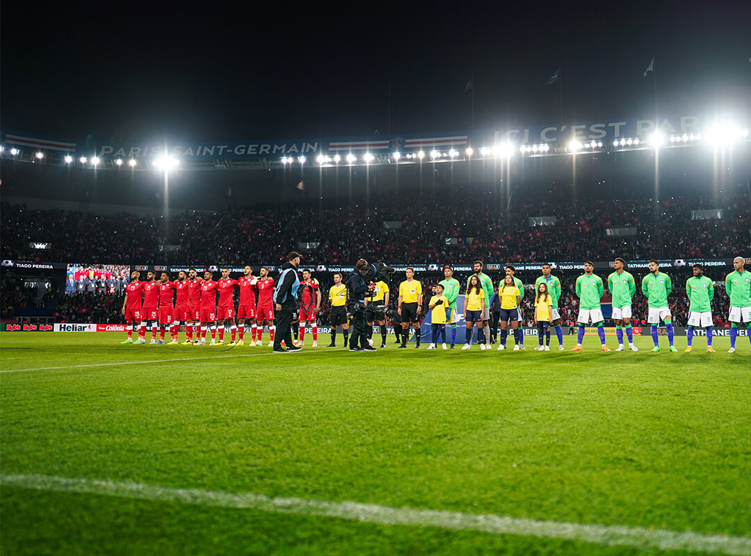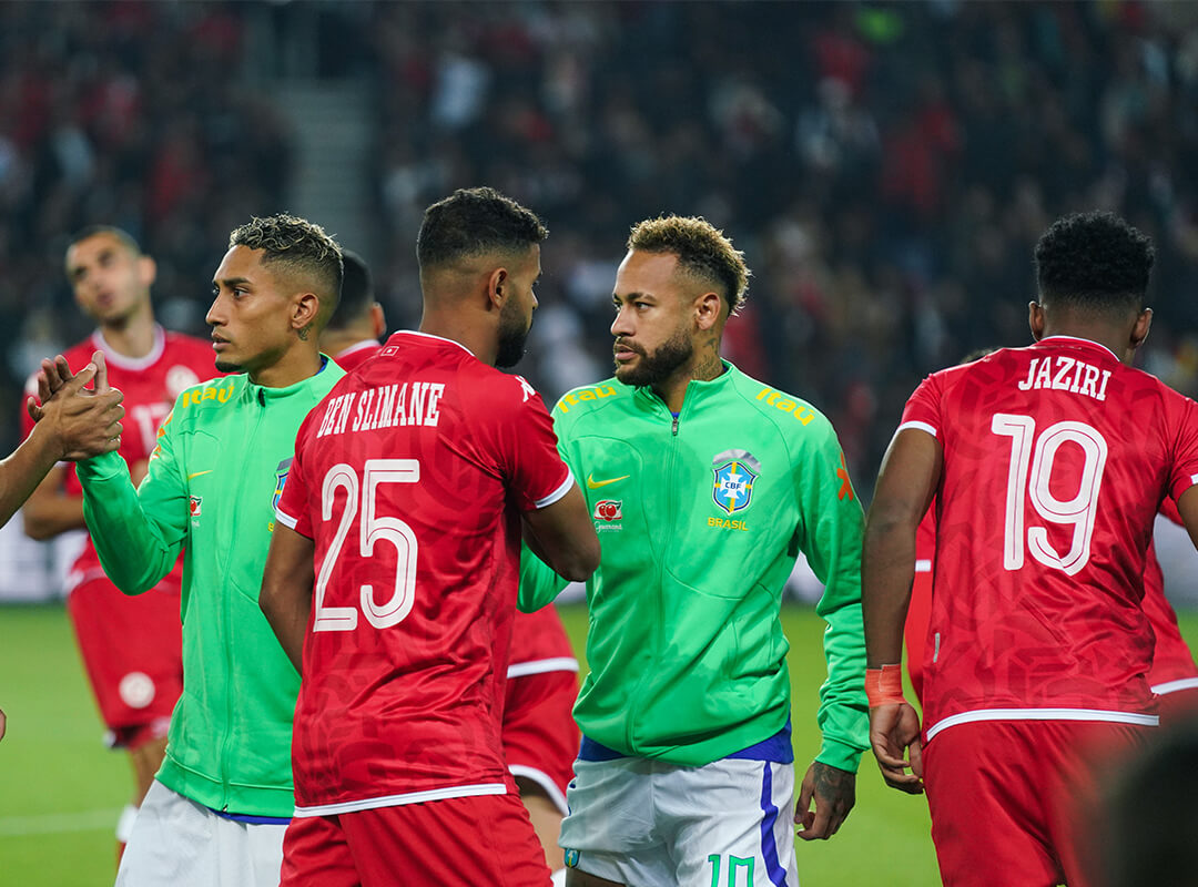 Since his first selection with the Selecao in 2010, Neymar Jr. has gradually become essential. Olympic champion with Brazil in 2016, he wears the captain's armband since 2014. On September 27, 2022, at the Parc des Princes, Neymar Jr and his teammates won 5 goals to 1 against Tunisia. In this offensive festival, the Brazilian number 10 scored his 75th goal with the Selecao, ahead of other national legends like Ronaldo, Romario and Zico.