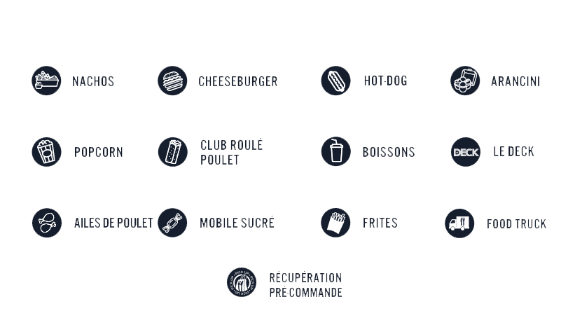 Selon votre billet au stade (porte et numéro d'accès), localisez les différents points de vente où vous pourrez notamment déguster nos Burgers, Chicken Wings, Sandwichs et Pizzas, élaborés et cuits sur place pour vous offrir une qualité optimale.